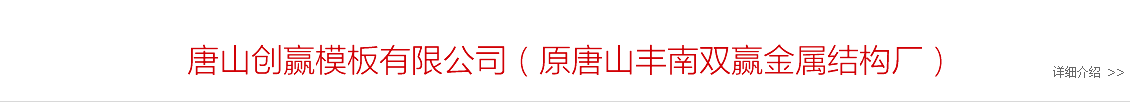 唐山創贏模板有限公司(原唐山豐南雙贏金屬結構廠)始建于一九九七年,是具規模實力的組合模板生產企業。公司技術力量雄厚,質量管理體系完善,與中鐵,中建,中交,中電,中水,中石油,中石化,河南水利工程局等大型施工企業有長期合作關系,產品覆蓋各省市自治區并出口新加坡,馬來西亞,委內瑞拉,印度,保加利亞等國,深受國內外客戶的一致好評。